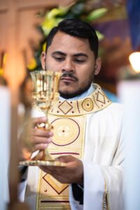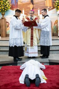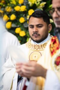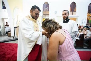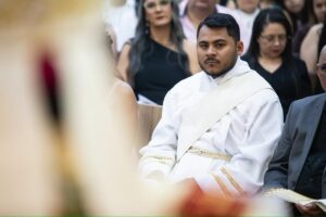 Com profunda emoção, Pe. Érick Hernanny recebeu a imposição das mãos e a unção crismal, tornando-se o 13º sacerdote ordenado pela Província Redentorista de Brasília, fruto de um caminho vocacional construído com dedicação e confiança na vontade de Deus.